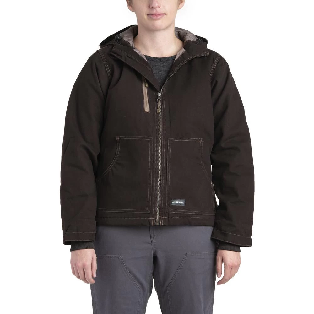 Yes, Berne designs workwear for the ladies. This jacket offers winter protection in a style that mixes tradition with a modern flair. It features a water-repellent duck shell, quilt lining and a fully-lined rain blocker hood.